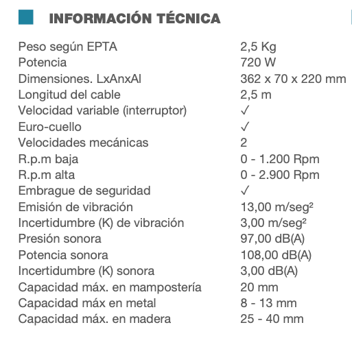 - Embrague de seguridad que alarga la vida de la herramienta