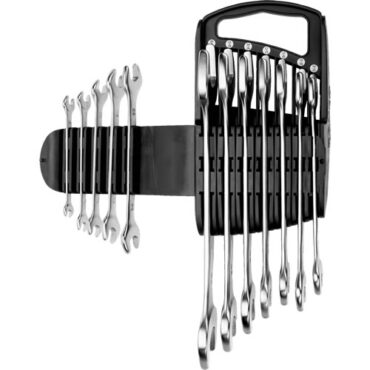 - Juego de llaves fijas de dos bocas métricas (12 piezas/colgador de plástico)